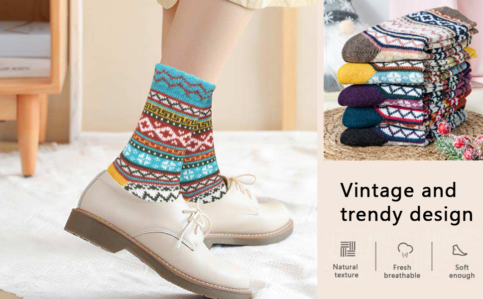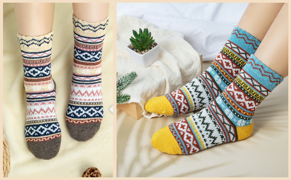 - Present Ideas: Come with 5 pairs winter socks for women, easy matching colors, various unique style of knit wool socks can as present or stocking stuffers for women, you can choose socks for mom, girlfriend, daughter, wife, friends