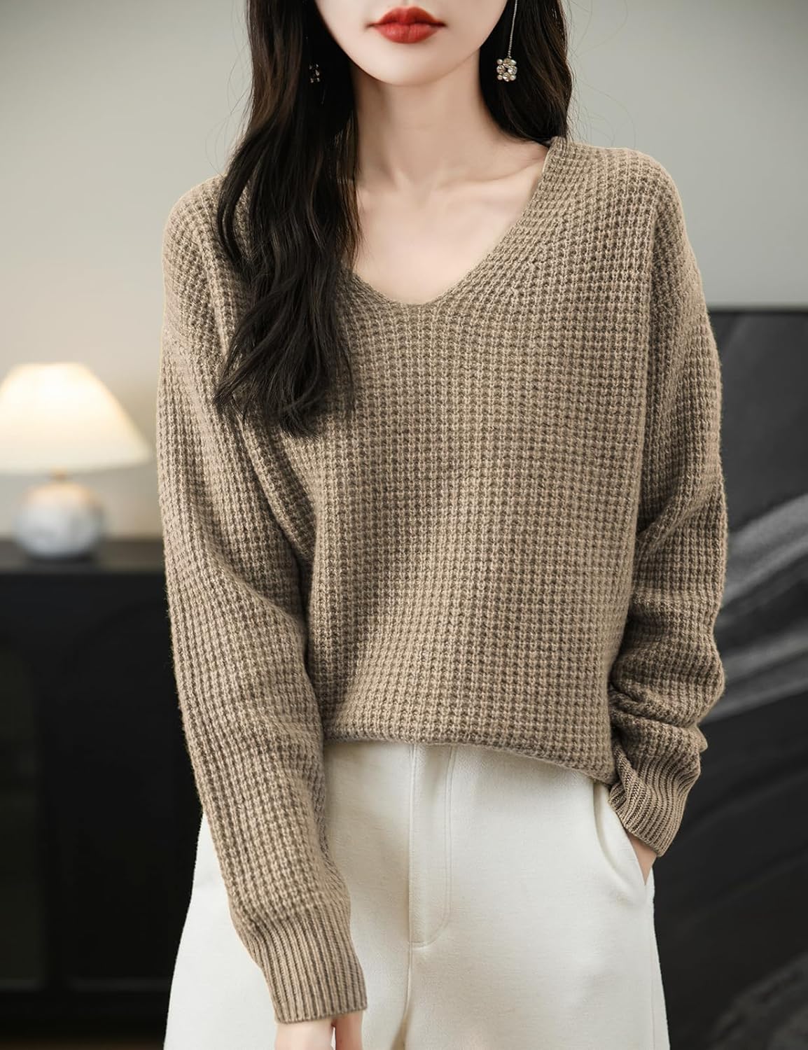 - u003Cliu003Eu003Cspan class=u0022a-list-item a-size-base a-color-baseu0022u003ERaw Material: Made of 26Nm/2 pure Merino wool fine yarn, this 100% merino wool sweater has a wool fineness of 17.5-17.9μm, with beautifully soft and fluffy texture, 2-Ply densely-knitted yarn of Long Staple finest fibers to deliver Best Anti-Pilling Performance.u003C/spanu003Eu003C/liu003E u003Cliu003Eu003Cspan class=u0022a-list-item a-size-base a-color-baseu0022u003ERaw Material Advantage: Unlike most 19-21μm Merino wool sweater on the market, all Merino wool products at Chanyarn are made from 17.5-17.9μm Superfine Australia Merino wool, which is of A+ grade quality. This choice incurs higher raw material costs. However, we chose it because it maximally restores the essence of Merino wool—being softer, warmer, more breathable, more skin-friendly, and more suitable for individuals allergic to wool.u003C/spanu003Eu003C/liu003E u003Cliu003Eu003Cspan class=u0022a-list-item a-size-base a-color-baseu0022u003ECASHMERE STYLE: Merino Wool is an entirely natural, renewable and biodegradable fiber that comes from the Merino breed of sheep. Merino wool is softer and lighter than traditional wool because the fibers from Merino sheep are finer and smoother. The fiber length and fineness of Australian superfine Merino wool can even rival that of cashmere.As a result, the fabric is thinner and buttery soft next-to-skin (unlike the scratchy feeling you may typically associate with wool).u003C/spanu003Eu003C/liu003E u003Cliu003Eu003Cspan class=u0022a-list-item a-size-base a-color-baseu0022u003EFeatures: Fine 7 gauge fabric, medium thickness. Normal fit, solid color, v neck, long sleeves, waffles knit design, ribbed cuffs. High elasticity, casual style. Lightweight, warm, soft, very comfortable to wear. The waffle is a timeless design that is built to last. It can create a casual and trendy look.u003C/spanu003Eu003C/liu003E u003Cliu003Eu003Cspan class=u0022a-list-item a-size-base a-color-baseu0022u003EUnderstated Luxury: This Merino wool sweater offers a soft touch akin to cashmere and a plush luxurious appearance. Whether for parties, travel, leisure, or work, it provides superior warmth, comfort, and admiration. Suitable for spring, autumn, and winter seasons.u003C/spanu003Eu003C/liu003E